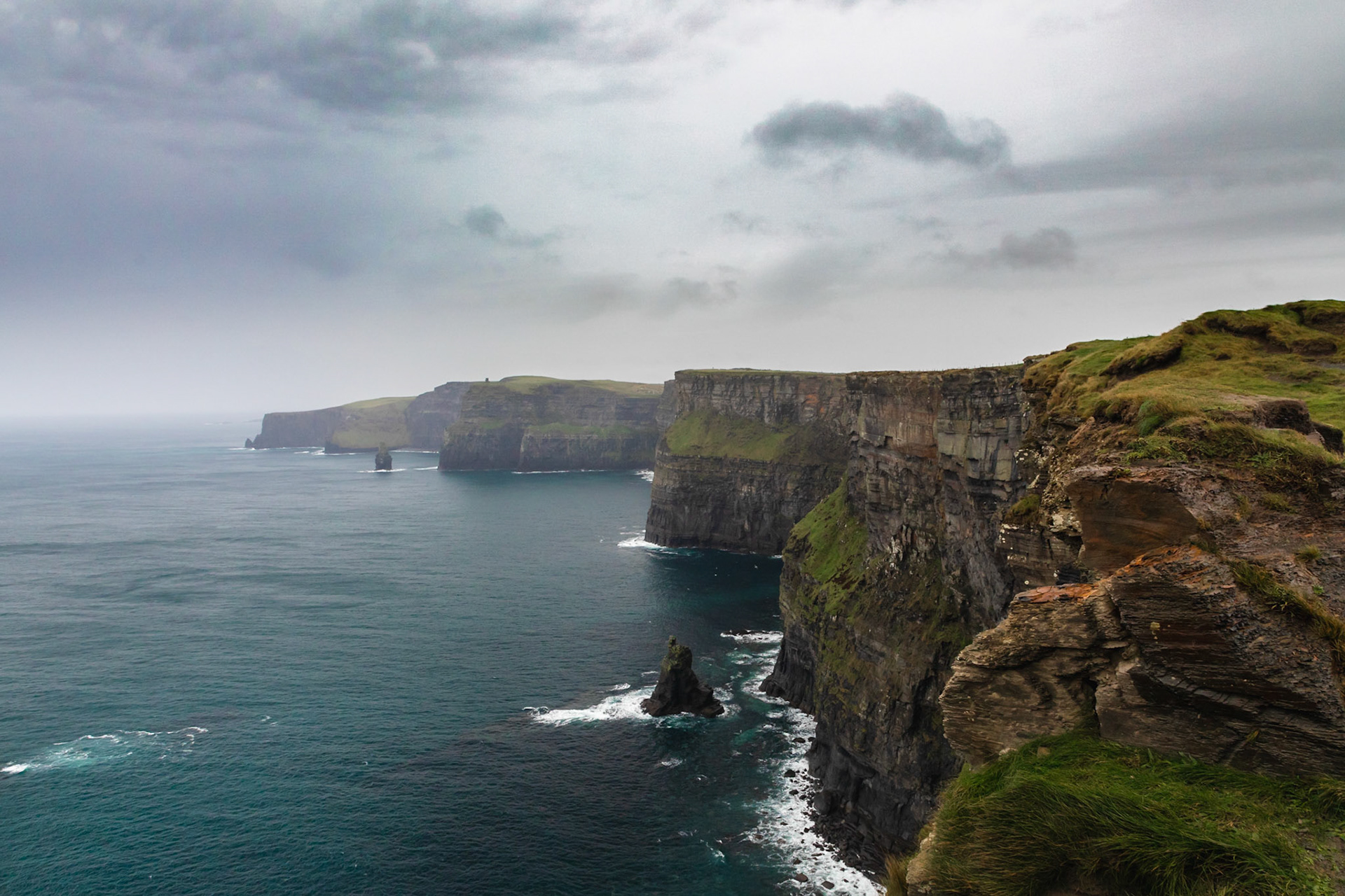 the west coast of Ireland, the cliffs of Moher in the sun and in the rain. 105mm/f4